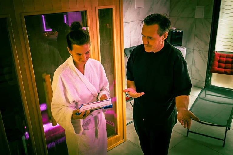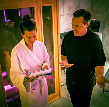 B /15 minutes de Sauna : Ouverture des pores / Stimulation de la sudation / Préparation du corps au soin / Transition douce avant le massage